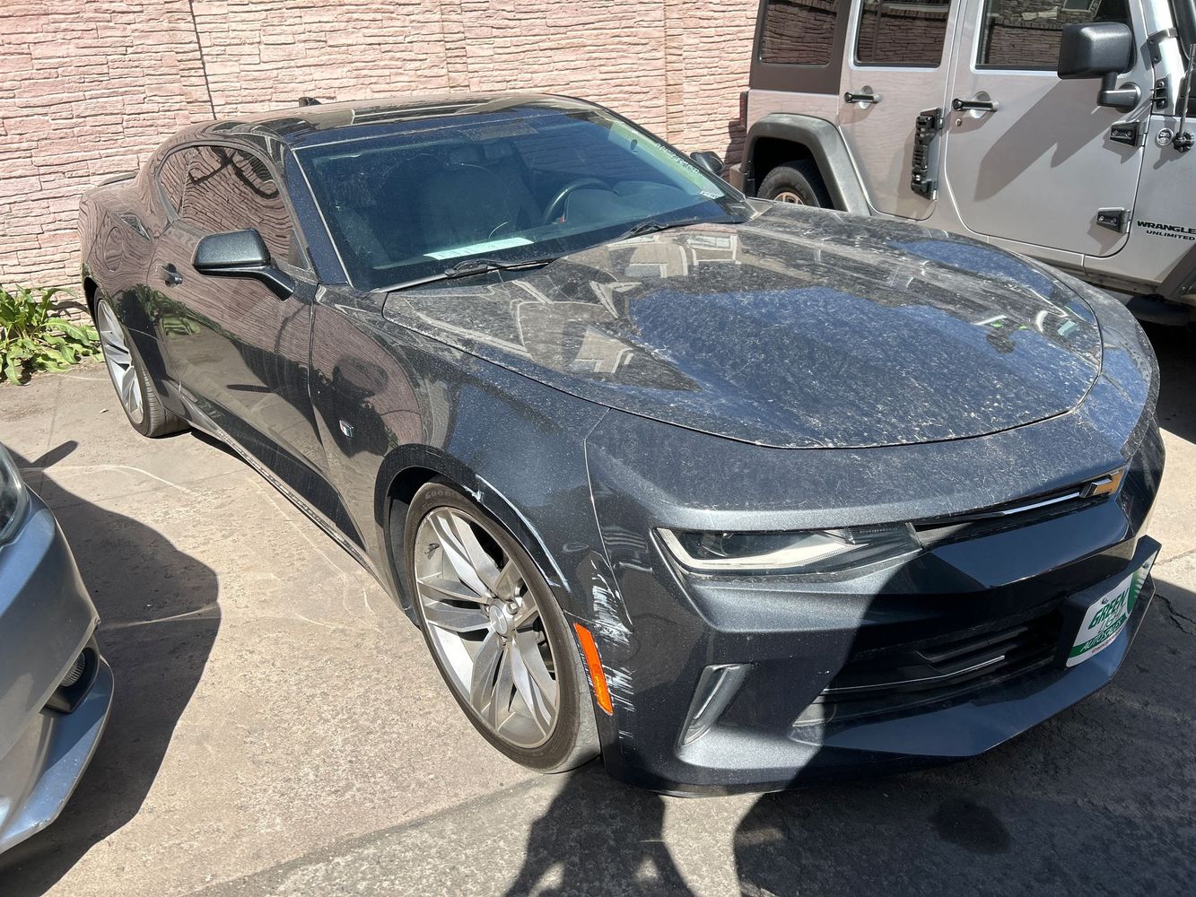 Unleash the thrill of driving with this 2017 Chevrolet Camaro 1LT Coupe, cloaked in a sleek Nightfall Gray Metallic finish. Powered by a robust 3.6L V6 engine delivering an exhilarating 335 horsepower, this coupe promises both performance and efficiency with up to 28 MPG on the highway. The RS Package enhances its sporty appeal with projector beam headlights and a rear lip spoiler, while the dual stainless steel exhaust adds an aggressive touch.