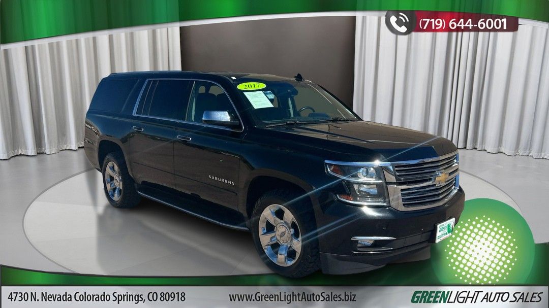 Experience the perfect blend of luxury and capability with the 2017 Chevrolet Suburban Premier. This commanding SUV, dressed in a sleek black exterior, is powered by a robust EcoTec3 5.3L V8 engine delivering an impressive 355 horsepower and equipped with advanced 4WD for all your adventures. Inside, indulge in premium comfort with perforated leather-appointed seating that includes heated and ventilated front seats, as well as heated second-row outboard seats to keep everyone cozy on those chilly days. The power-folding third-row seat offers versatile cargo space at the touch of a button.