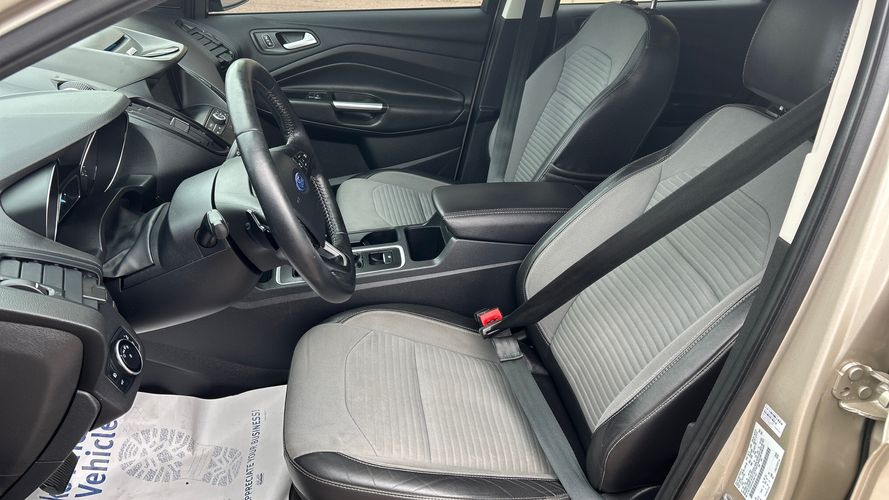 Experience the perfect blend of style, technology, and performance with this 2017 Ford Escape SE in stunning White Gold Metallic. Powered by a robust EcoBoost 4-cylinder engine delivering 179 horsepower, this SUV offers both efficiency and excitement on every drive. The sleek exterior is enhanced by the SE Sport Appearance Package featuring black bodyside moldings and grille, while projector beam headlights ensure you light up any road ahead. Inside, enjoy premium comfort with leather seating and a sophisticated leather-and-metal-look steering wheel.